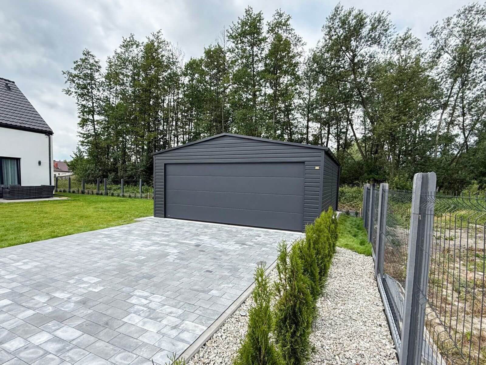 Garaż blaszany z bramą segmentową dwuspadowy 6m x 6m Grafit