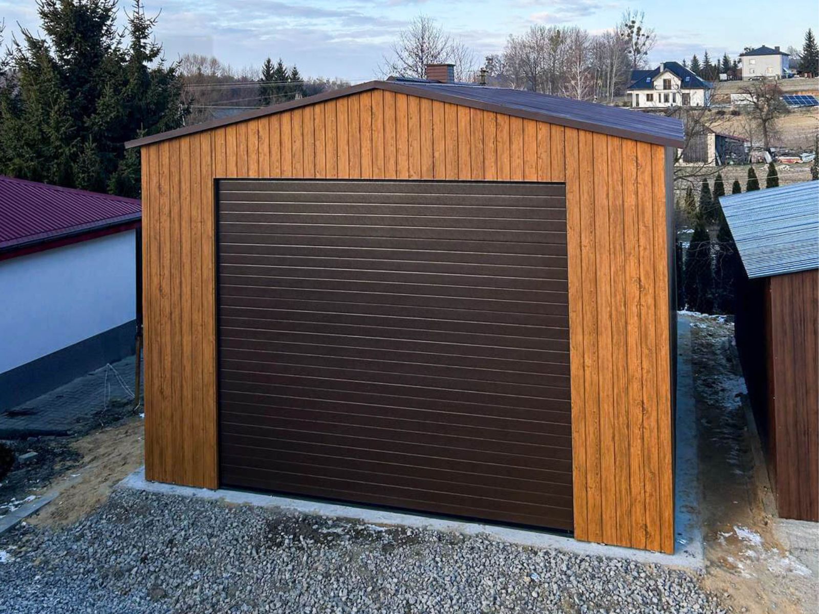 Garaż blaszany dwuspadowy 5×8 brama segmentowa