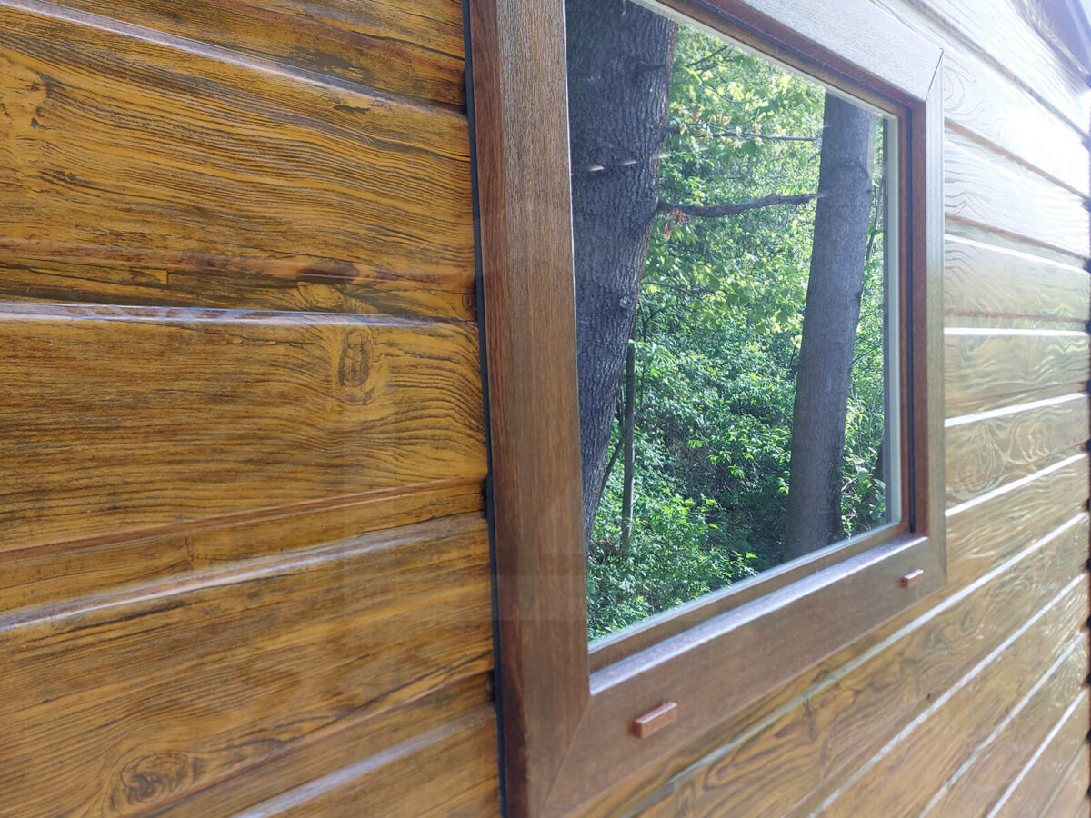 Garaż dwuspadowy Złoty dąb Premium 14m x 6m z wiatą zbliżenie na okna